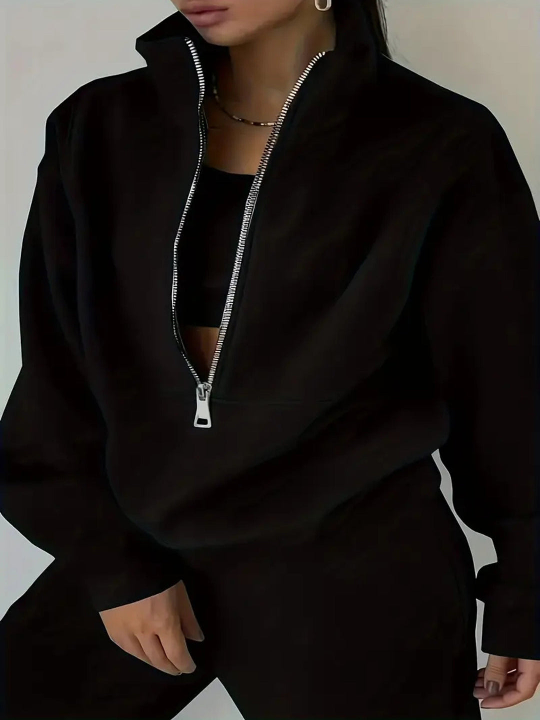 Hester - Hosszú Ujjú Kapucnis Pulóver Cipzárral