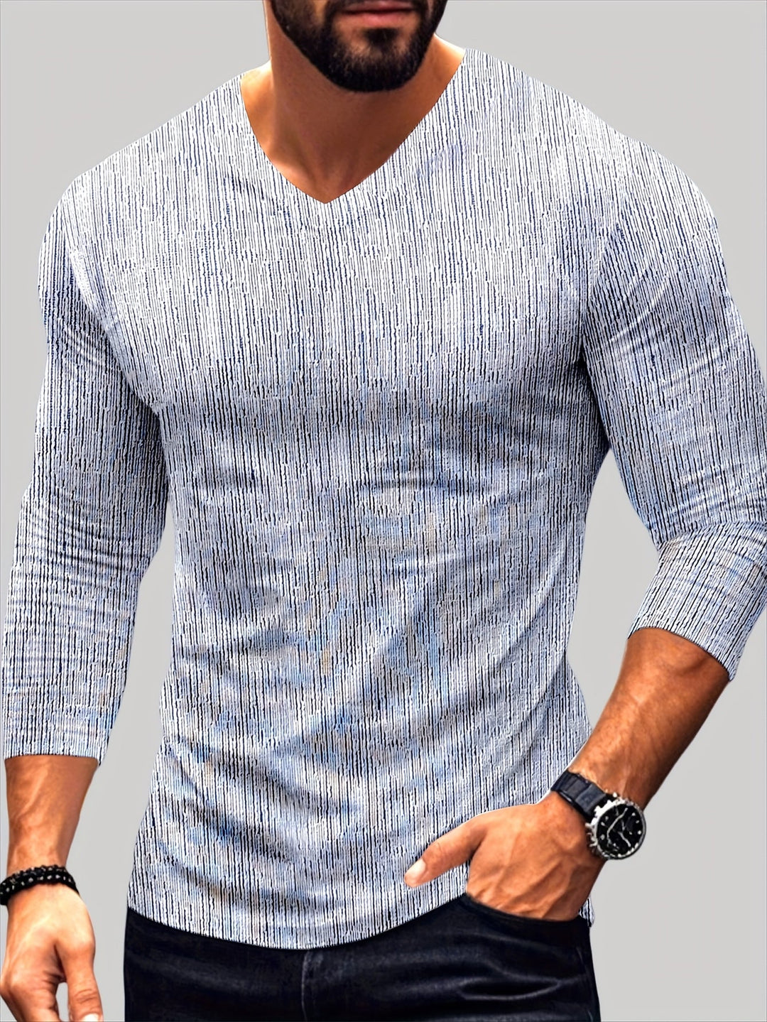 Usher - Karcsú Szabás Hosszú Ujjú, V-Nyakú Póló