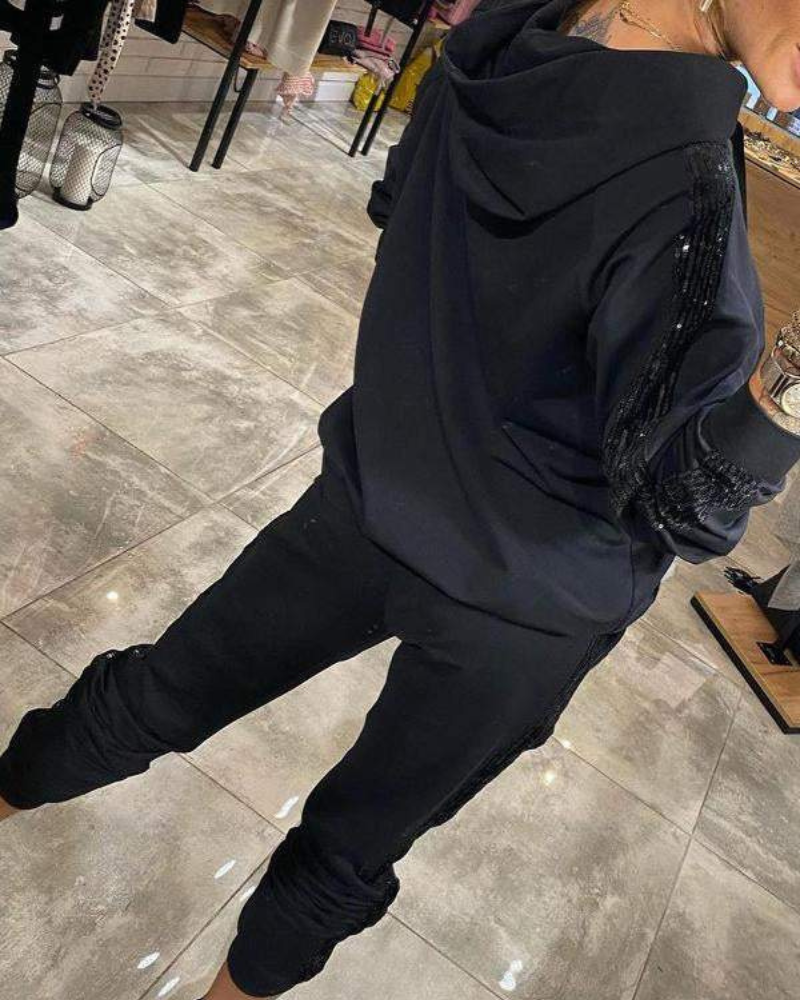 ✅Stílusos flitteres részletek: A Gretta kétrészes szett ujjai és nadrágszárai csillogó flitteres betétekkel vannak díszítve. Ezek a részletek gyönyörűen visszatükrözik a fényt, és finom, mégis elbűvölő csillogást kölcsönöznek a mindennapi viseletnek. Tökéletes egyensúlyt teremt a laza kényelem és a csillogás között, így ideális mind otthoni pihenésre, mind pedig kirándulásra.