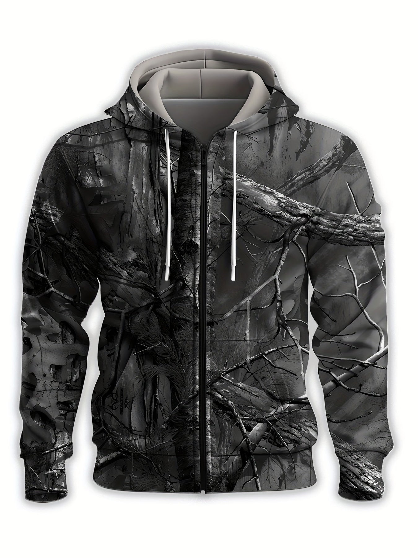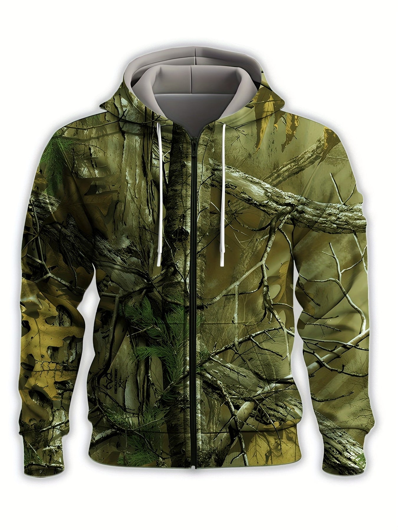 Zip-up kapucnis pulóver merész erdőág mintával a természet szerelmeseinek!