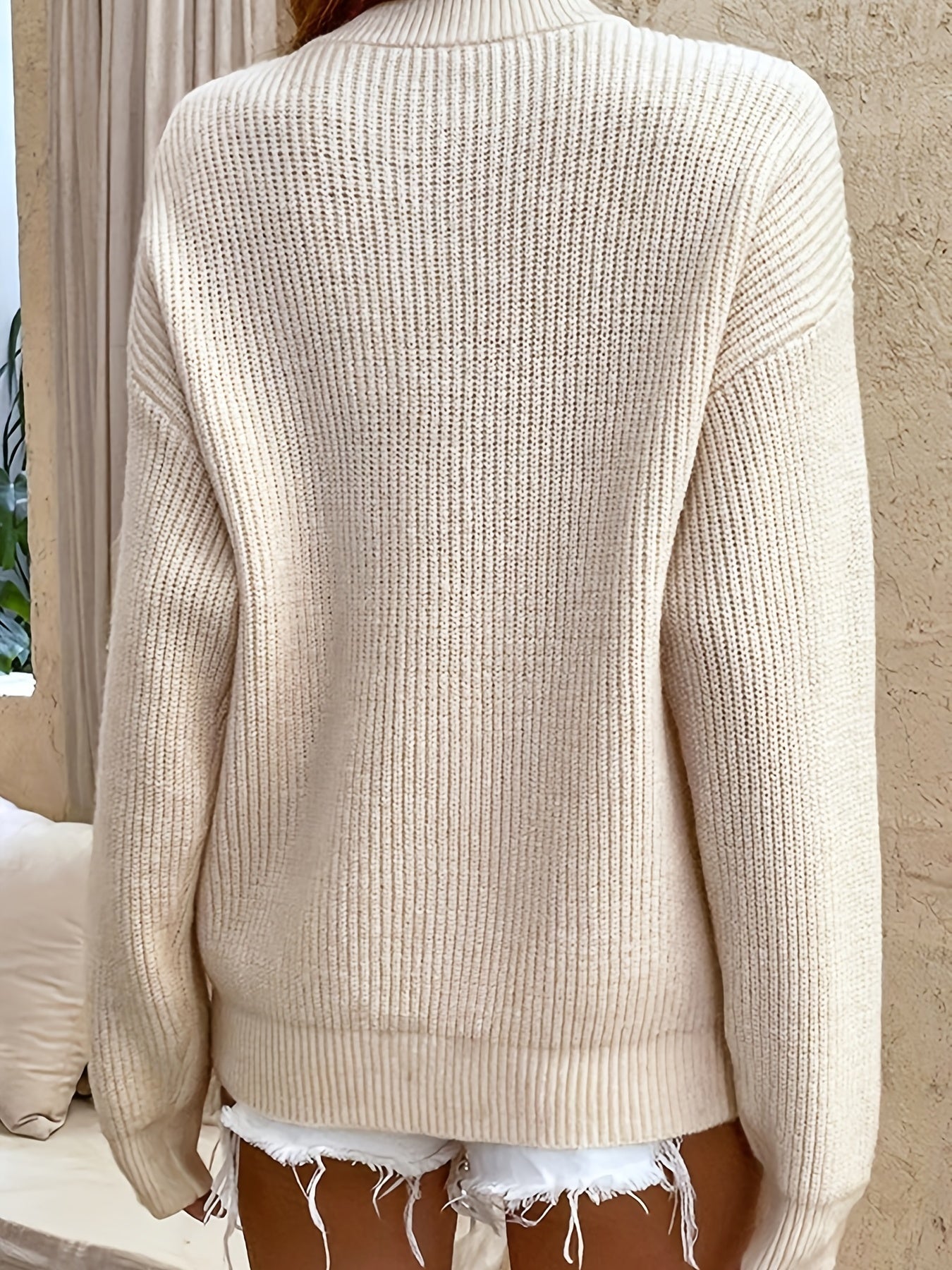 ✅Texturált kötés, stílusos kivitel: A bordás kötés textúrája mélységet és karaktert ad a pulóvernek, vizuálisan vonzóvá téve azt. Kiegyensúlyozza a laza stílust egy kis finomsággal, így többféle helyzetben is viselhető. Ez a részlet emeli a pulóvert a egyszerű alapdarabok fölé. Átgondolt kialakítás sokoldalú alkalmakra.